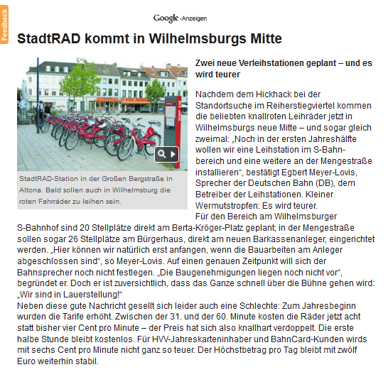 Radverkehr auch in Billstedt-Horn ein Top-Thema Weiteres hier | 02/2013 |
