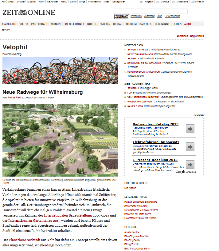 ZEIT-Online Blog zum Thema Radfahren Mehr dazu finden sie hier |
